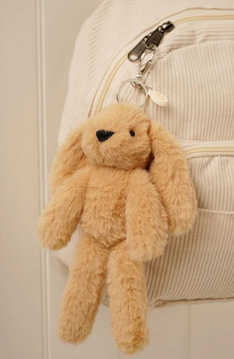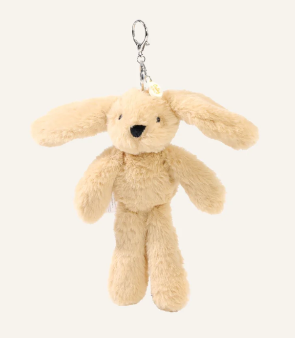 This light brown plush bunny seamlessly transitions between keyring and bag charm, offering versatility without compromising on appeal. Finished with an elegant name tag, Oatey serves as a refined companion for your daily carry. Whether attached to your keys or bag, this delightful Softie brings warmth and character to your everyday routine.
