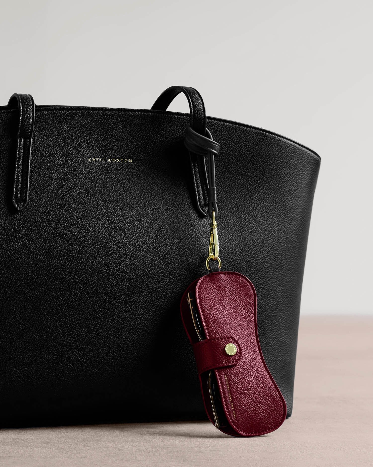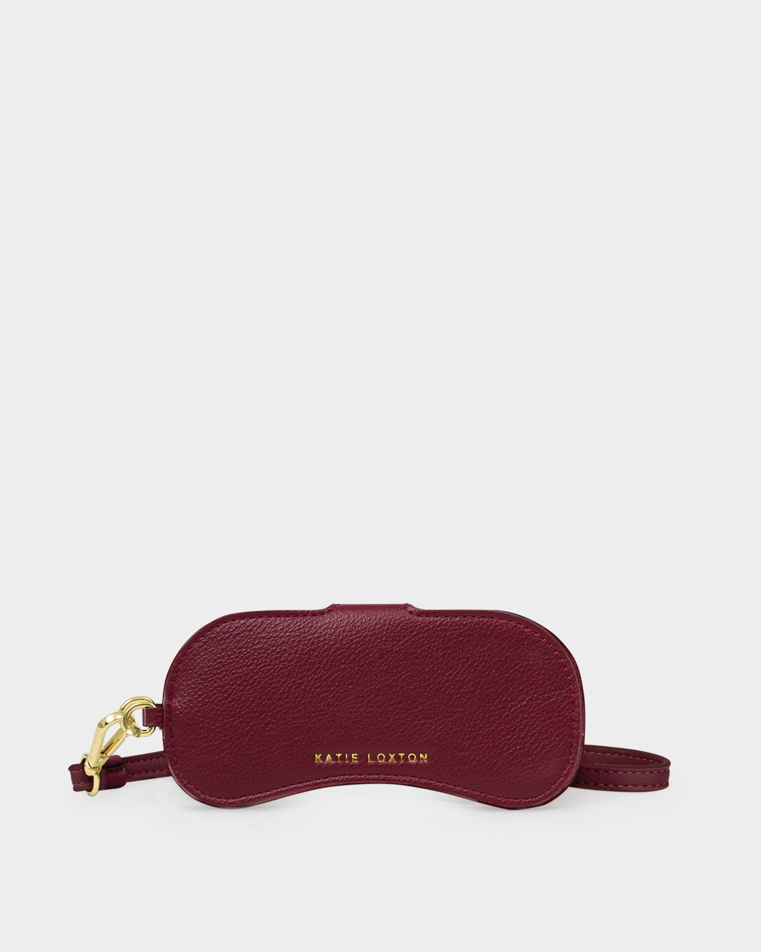 The Katie Loxton Everyday Sunglasses Case in cherry features smooth vegan leather and a super-soft suedette lining to protect your glasses from scratches.
