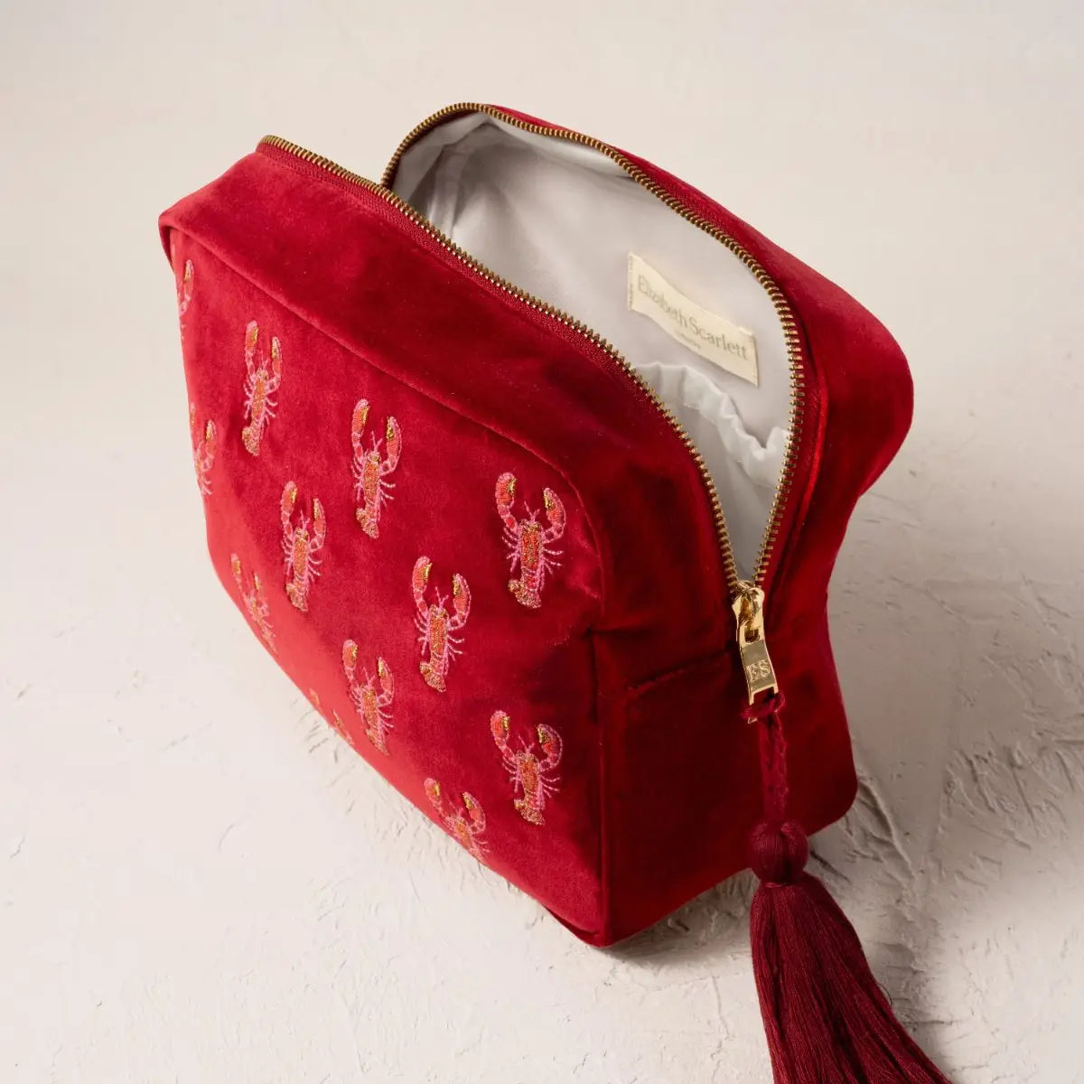 Elizabeth Scarlett - Lobster Velvet Wash Bag - Rouge
