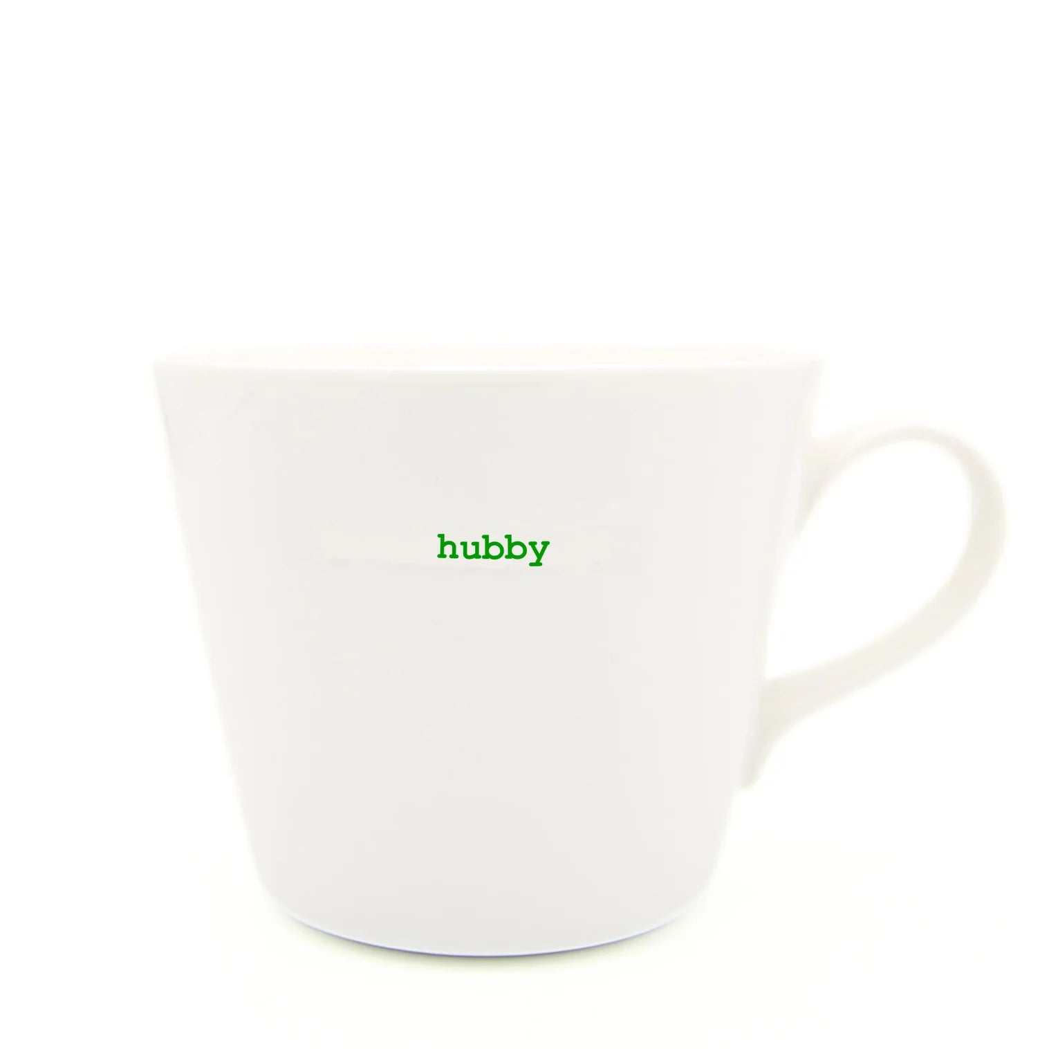 Featuring 'Hubby' in a charming green typewriter typeface, this 350ml porcelain vessel brings affection to everyday moments. Durable and dishwasher safe, it's equally at home cradling morning coffee or an evening drink. A meaningful anniversary or wedding gift that balances practicality with genuine sentiment—ideal for couples who value design infused with warmth and wit.