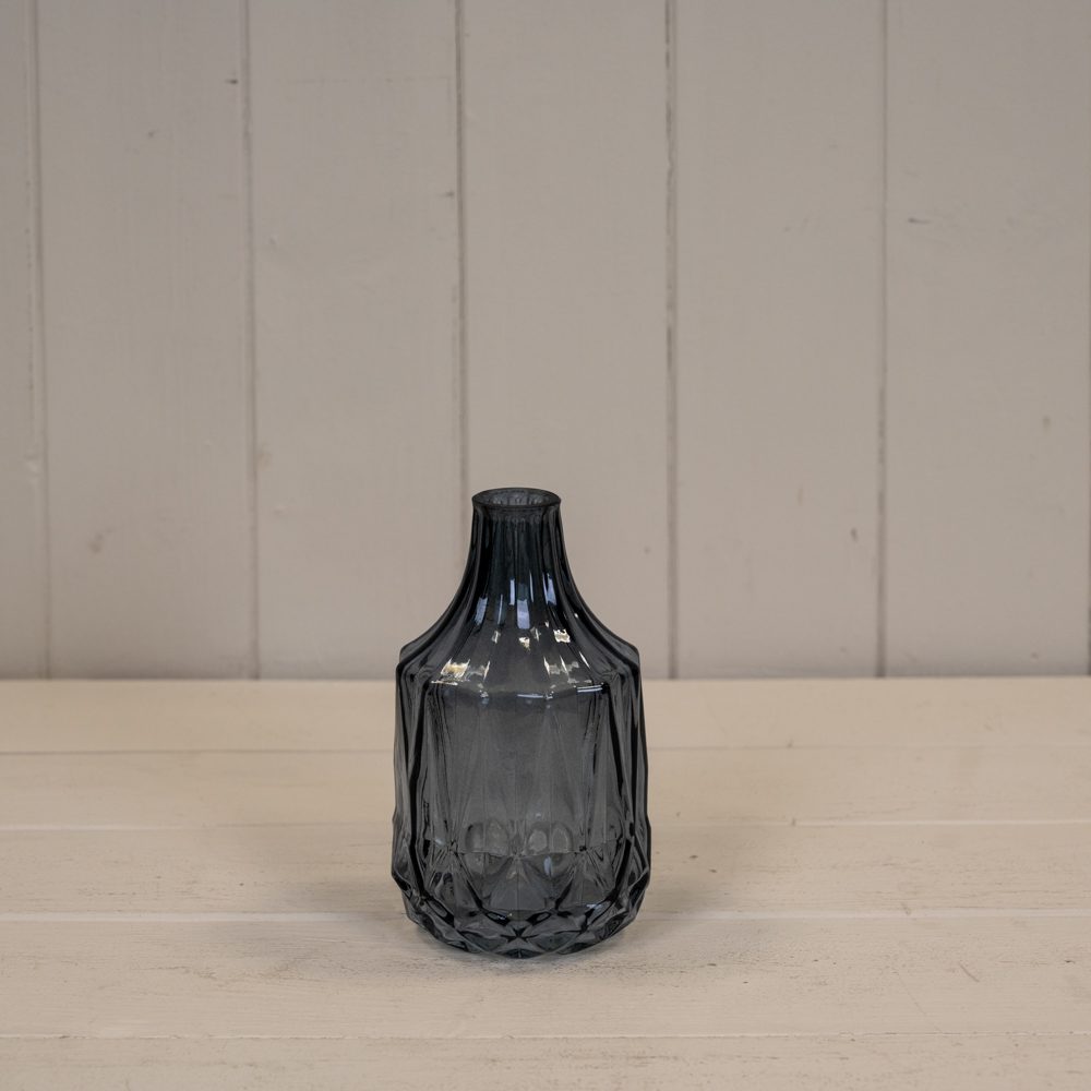 The Satchville Cool Grey Glass Bottle serves as an elegant vase, perfectly suited for small greenery and seasonal blooms.