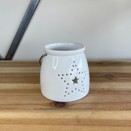 Made of ceramic with a playful dotted star design, this simple yet stylish holder will create a warm and inviting atmosphere when lit. Perfect for adding a touch of magic to your home.
