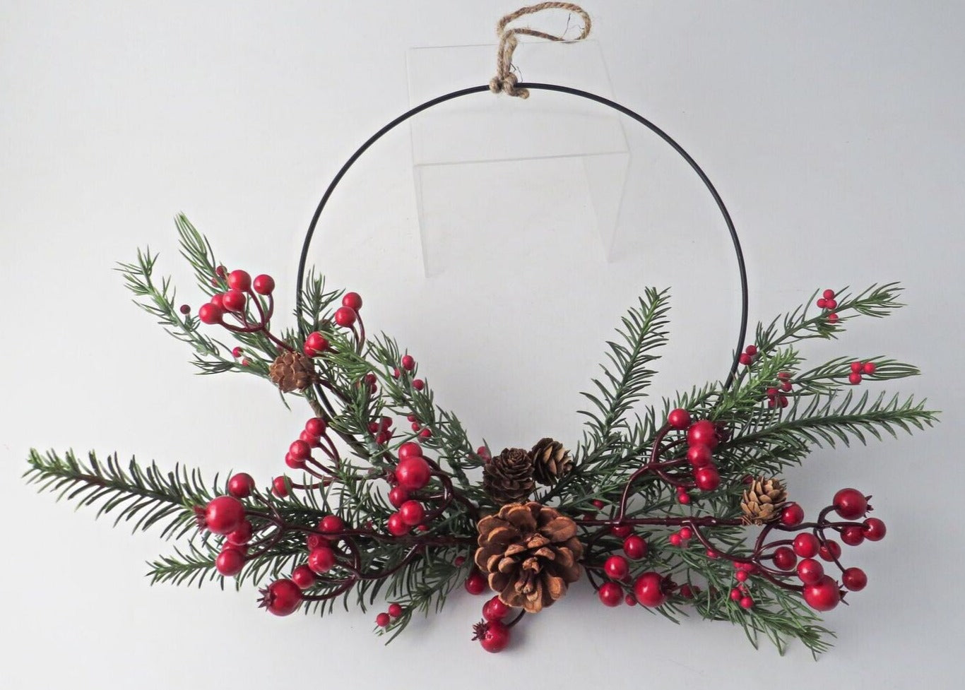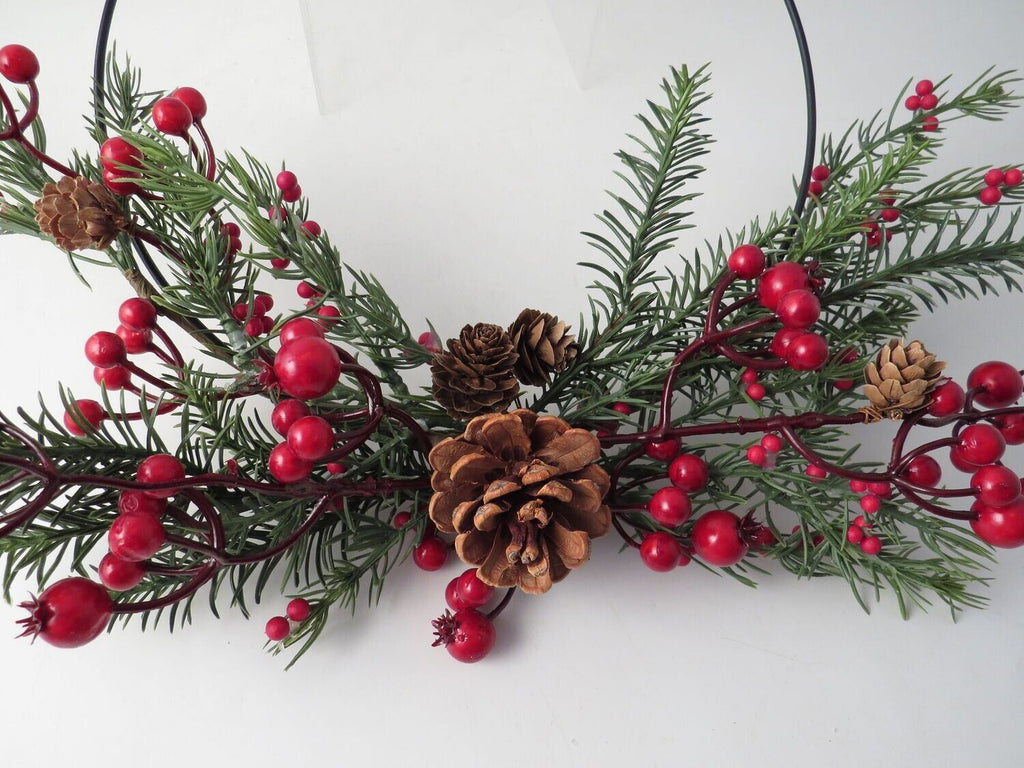 Crafted from sturdy metal, this wreath features realistic foliage, red berries, and pine cones, making it the perfect addition to your Christmas decorations. Perfect for adorning your front door or mantelpiece, bring the spirit of Christmas into your home with this beautiful decoration.