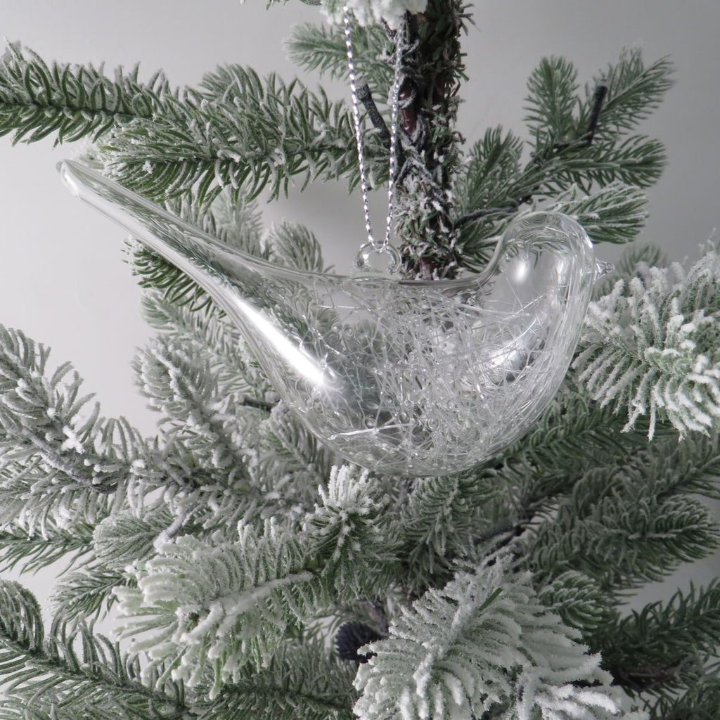 Bring a festive flutter to your Christmas tree with this sparkling glass bird decoration.