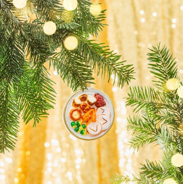 Add a playful touch to your festive decor with this Christmas dinner shaped bauble.