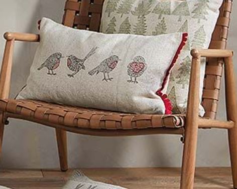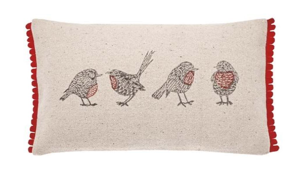 Featuring a charming robin design, the red border and zip closure provide convenience and style. Bring joy to your home with this unique and eco-friendly cushion.
