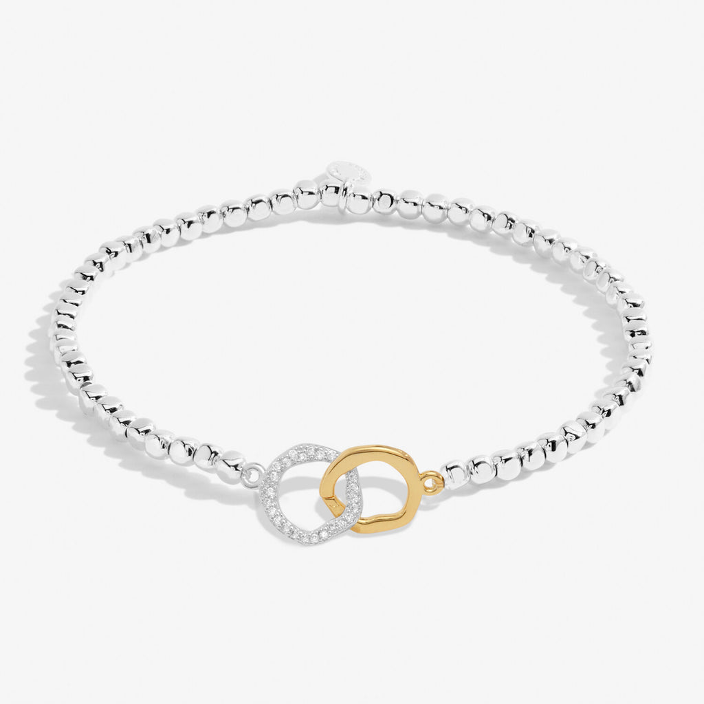 Made to last a lifetime, this silver and gold-plated bracelet features a hammered bead design and interlocked circles with dazzling pavé detail. With a sentiment and poem on a blush pink card, this special piece makes the perfect gift for your soul sister.