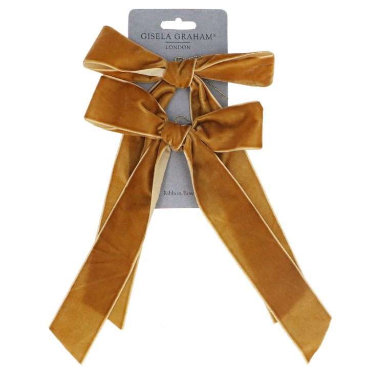 Elevate your festive décor with the Gisela Graham Gold Velvet Bow Decoration Pack.