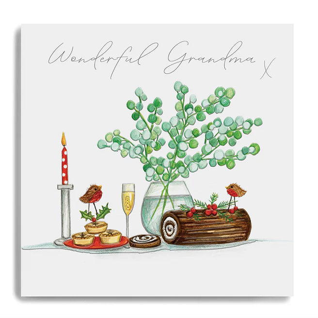 Bring the Christmas cheer to your Grandma this year with the Yule Log and Mince Pies greeting card.