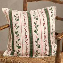 Expertly hand screen printed on 100% cotton slub fabric, the Walton & Co Holly Berry Stripe Cushion adds a touch of unique charm to any space.