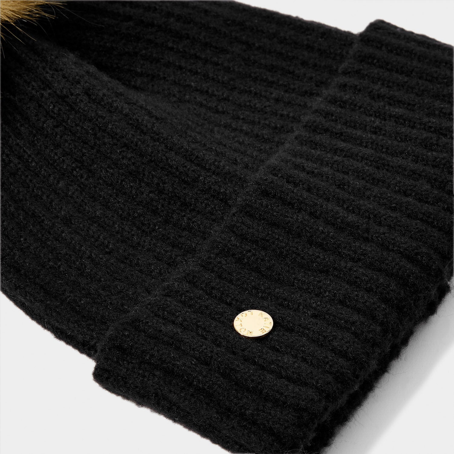 This hat provides both warmth and style with its super-soft, chunky knit material, pom pom detail, and gold-tone branded disc. Pair with the knitted scarf and gloves for for a complete and fashionable look