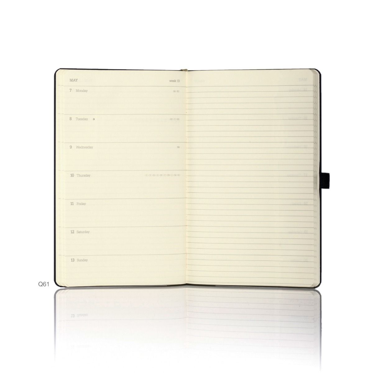 Crafted in Italy using high-quality certified ivory paper from sustainable forests, this diary offers a refined weekly notes format ideal for organised planning. The Tuscon diary’s understated style and superior craftsmanship support a sophisticated brand presentation throughout 2026.