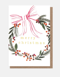 Mini Merry Christmas Painted Wreath With Bow - Pack of 10 cards