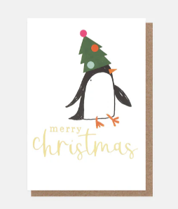 Mini Merry Christmas Penguin In Tree Hat - Pack of 10 Cards
