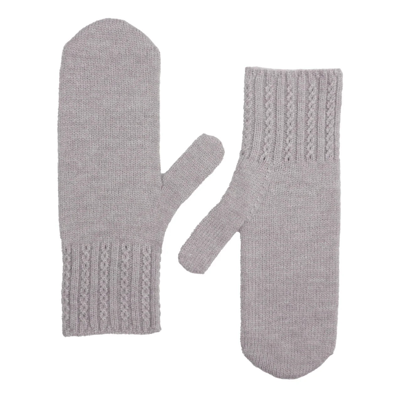 Stay warm and fashionable with these knitted mittens in grey.