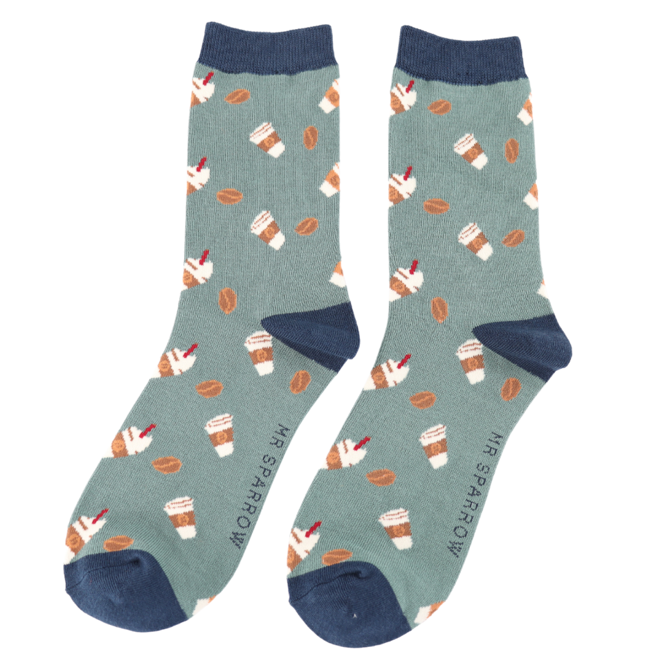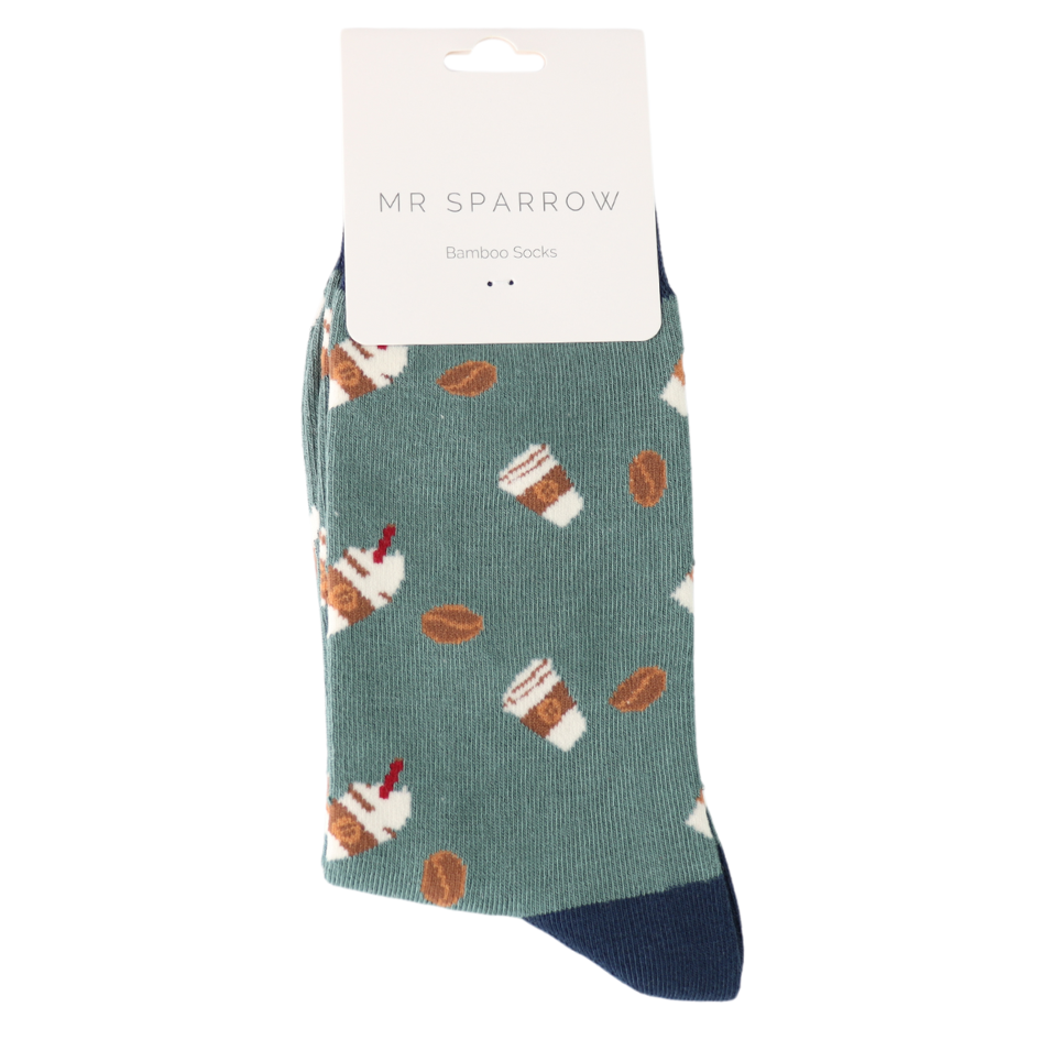 Celebrate a love for coffee with Mr Sparrow Takeaway Coffee Socks in green.