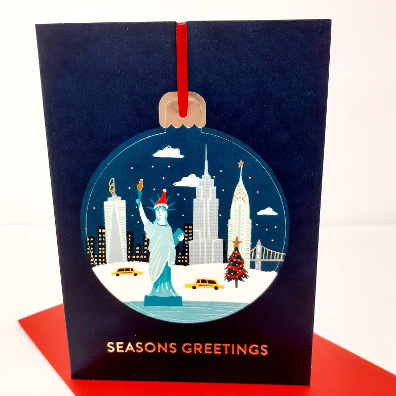Perfect for sending wishes overseas, this card contains a pop out keepsake Christmas bauble with festive red ribbon