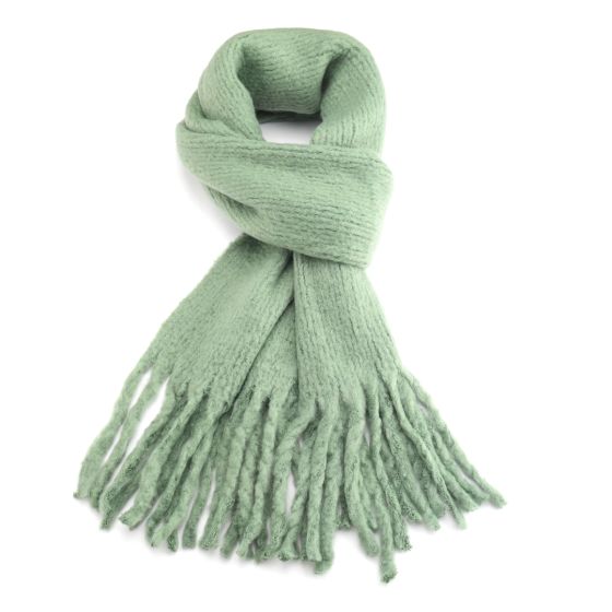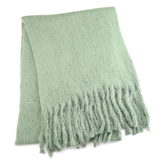 The Red Cuckoo Plain Scarf in green offers a warm and cosy layer ideal for autumn and winter.