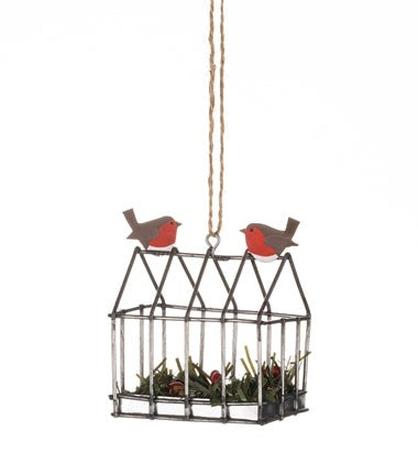 This cute robins on a greenhouse decoration is perfect for adding a merry touch to your home.