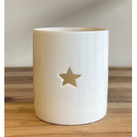 The sleek ceramic design features a small star cut decal, perfect for creating a cozy and warm atmosphere during the autumn and winter seasons.