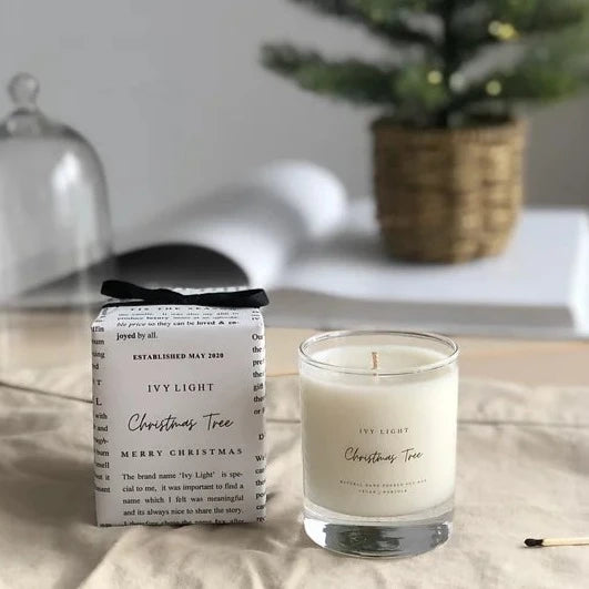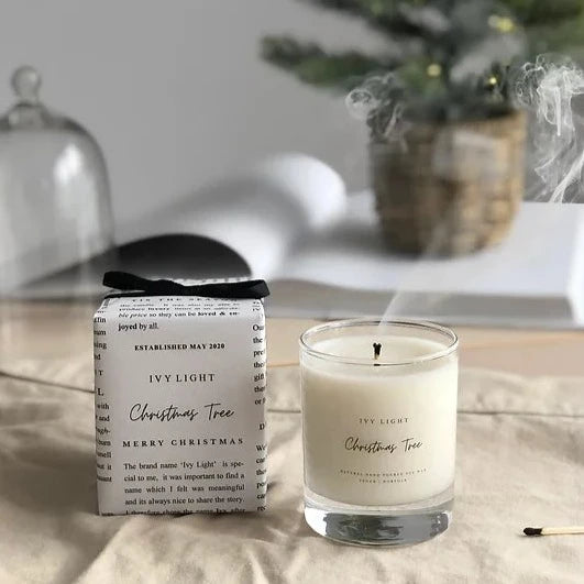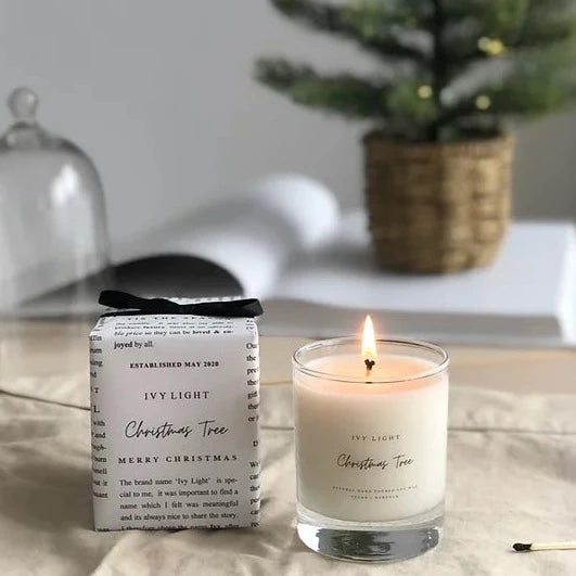 Experience the fresh scent of the season with Ivy Light's Christmas Tree scented single wick candle.
