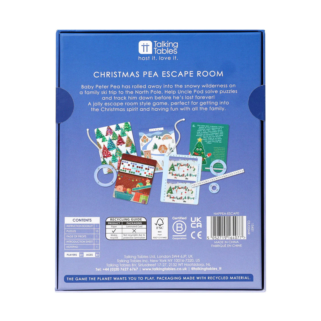 Packed with festive clues and fun challenges, players team up to "free the peas" and complete the mission. Perfect for family fun, parties, or as a unique holiday gift, this game adds a playful twist to your celebrations.